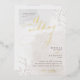 Célébrez votre journée spéciale en beauté avec ce Faire-part de mariage botanique élégant, avec un design floral délicat sur fond d'aquarelle, des accents luxueux en feuille d'or, et une typographie manuscrite élégante et originale en or. Cette invitation de mariage haut de gamme comprend de l'espace pour la photo de votre couple préféré au dos, mêlant personnalisation moderne et élégance intemporelle. Parfait pour les mariages formels, les cérémonies de jardin, ou tout événement où le style et le raffinement sont importants, cette invitation est entièrement personnalisable — modifier le texte, les polices, la photo et la mise en page pour en faire le vôtre.