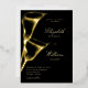 Une invitation de mariage classique, moderne et élégante en noir, blanc et or, avec un dessin à l'encre de deux fleurs de lys calla superposées numériquement d'or (pas de vrai papier d'aluminium !) sur un arrière - plan noir. Une calligraphie élégante se marie merveilleusement à l'élégance des fleurs. Un choix sympathique pour un mariage noir et or, un mariage de cravate noir formel ou un mariage avec des lys calla.