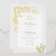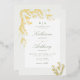 Un élégant modèle classique d'invitation au mariage d'hiver moderne avec des botaniques d'hiver délicats dessinés à la main - des branches d'orteils - avec une couverture en feuille d'or (véritable feuille !), avec de la calligraphie pour les noms, sur un arrière - plan vert pâle et mistletoe. Ethérée, romantique et élégante, elle plaira à la mariée et au marié moderne qui sont romantiques au coeur et comme des modèles formels et traditionnels mis à jour.