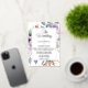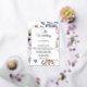 Présentant notre faire-part de mariage minimaliste et tendance, avec de jolies fleurs aux feuilles violets et verts clairs et plus, avec un élégant arrière - plan, créant un look propre et élégant pour votre journée spéciale.