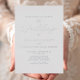 Ce faire-part de mariage simple et moderne présente un véritable texte argenté sur un arrière - plan gris pâle, avec les mots "le Mariage de" dans un élégant script de calligraphie manuscrit. Ajoutez les noms de la mariée et du marié dans serif et les détails du mariage dans la police sans serif. L'envers est gris solide.