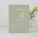 Carton d'invitation Mariage Vert Sauge Or Ampersand avec Feuille d'Or.