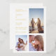 Modern Engagement Party Invitation avec un montage photo avec trois de vos photos préférées. Les détails de votre événement sont à gauche dans un style minimaliste. Tout le texte est en feuille d'or. Cette invitation chic à la fête d'engagement est idéale pour un couple qui veut présenter plusieurs de leurs photos préférées.