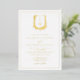 Cette élégante faire-part de mariage en feuille d'or réelle et formelle présente une magnifique crête en monogramme d'art floral en haut.