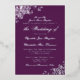 Cette belle faire-part de mariage dégage une élégance classique. Le design traditionnel comprend une impression de papier peint réel sur un arrière - plan couleur prune violet. La typographie comprend des lettres en dentelle argentée, et il y a des boucles et des tourbillons décoratifs ornés dans les coins. Le libellé est formel, le mariage étant accueilli par les parents de la mariée. Elégante, élégante, sophistiquée et chic, cette invitation est une merveilleuse façon d'invitation vos amis et votre famille pour partager votre joie lors de votre journée spéciale!