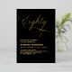Invitation En Aluminium Élégant Script 80e anniversaire Black Gold 80e ann