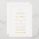 Faire-part de mariage de style traditionnel avec un design simple avec votre monogramme avec vos détails dans un élégant or sur un arrière - plan blanc. Tous les éléments de conception sont en feuille d'or. Cette Faire-part de mariage classique est idéale pour un mariage formel.
