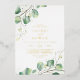 Cette élégante invitation à la feuille d'or décontracté mariage vert est parfaite pour un mariage simple. Le design élégant et moderne présente un agencement botanique naturel d'eucalyptus, de feuilles et de plantes avec un accent de lavage à l'aquarelle verte à la menthe et un texte de papier doré luxueux estampillé.
