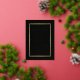 Cette élégante invitation de fiançailles comporte un script de calligraphie de feuille d'or et un cadre de feuille d'or sur un simple arrière - plan noir. Conçu par Susan Coffey.