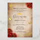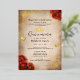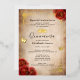 Créez vos propres invitations élégantes à la quinceanera rouge accentuées dans de la feuille d'or réelle (disponible aussi en argent et en or rose). L'art floral vintage de Raphaela Wilson dépeint des roses d'aquarelle rouge foncé dramatique, des confettis de papillon étincelant, une bordure de robe/robes de figuier, et une couronne princesse royale / tiara. Gardez l'ancien arrière - plan de papier parchemin de défilement vieilli, ou ajoutez votre propre texture ou image. Si vous souhaitez inclure votre propre image au dos, comme une photo glamour de Mis Quince Anos, il est aussi facile que de télécharger votre propre image. Ces invitations en papier parchemin de luxe peuvent être reformulées pour complimenter les mariages rouges et or, une princesse mexicaine fêtée de 16 ans, baby shower royal pour une fille, une douche nuptiale à l'époque, ou d'autres occasions uniques, spéciales. N'hésitez pas à changer le script de calligraphie noire et les polices modernes en un autre style typographique de votre choix en customisant davantage le design floral sur ces invitations personnalisées do-it-yourself modèles. Bon appétit ! Catégorie : invitations vintages à un mariage de roses rouges, invitations de coing personnalisés avec papillons / fleurs, papeterie parchemin sur mesure avec papier d'or réel. Couleurs de la soirée à thème rouge et or : bordeaux, rouge foncé, marron, marsala, brun, or, noir et blanc.
