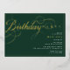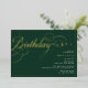 Élégantes invitations de fête d'anniversaire avec des accents de feuille d'or sur un arrière - plan vert foncé. "fête d'anniversaire" et le texte du nom seront présentés dans un véritable papier métallique, tandis que le texte des détails de l'événement sera imprimé en blanc mat, pour une lisibilité aisée.