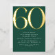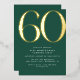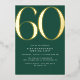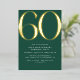 Invitations modernes de 60ème anniversaire avec un grand, cap "60" en véritable feuille métallique. Les détails de votre événement sont écrits ci-dessous en caractères blancs mat. Design neutre pour le genre avec de véritables accents de papier peint sur un arrière - plan vert foncé.