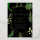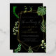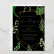 Parfait pour un mariage boho, cette invitation élégante et rustique présente des feuilles moody vert foncé et des eucalyptus sur un arrière - plan noir profond. Le design bohème moderne est agrémenté d'un luxueux texte en feuille d'or, créant une atmosphère sophistiquée et naturelle.