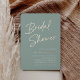 Invités Invitations pour célébrer la mariée d'être avec ces invitations de douche nuptiale modernes et minimes avec d'étonnants accents roses en feuille d'or. Le design simple comprend une "douche nuptiale" en décontracté écriture manuscrite, avec les détails de votre événement alignés à droite en lettres blanches modernes sur un arrière - plan vert eucalyptus doux.