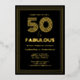 Un luxueux invitation de fête du 50ème anniversaire avec un design de typographie rétro rétro glamour en papier et noir. Fêtez votre grande journée avec cette invitation moderne et élégante en papier d'aluminium. Sois Cinquante et fabuleux !