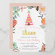 Les invitations adorables pour le troisième anniversaire de votre animal sauvage comportent une bordure florale de saumons et une illustration de tipi rose. "Jeune, sauvage et trois" apparaît en feuille d'or, avec les détails de votre 3ème anniversaire de fête en dessous, sur un arrière - plan blanc accentué avec garniture de feuille d'or.