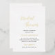 Invitations contemporaines de douche nuptiale avec un agencement simple et minimaliste avec en-tête dans un élégant script de calligraphie. L'en-tête, le nom de la mariée et la première ligne des informations du registre sont en papier or. Un design moderne qui va bien avec n'importe quel style de douche nuptiale.
