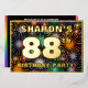 La façade de cette carte d'invitation à fêtes de quatre-vingt-huitième anniversaire, joyeuse et optimisée, comporte un nom personnalisable, un grand numéro "88e", le message "FÊTE D'ANNIVERSAIRE !" et une frontière. L'arrière - plan du front a un motif multicolore qui attire l'oeil et ressemble à un feu d'artifice de célébrations. Le verso présente des détails personnalisés sur l'événement, tels que la date, l'heure, le lieu/lieu et toute autre information importante. Des invitations customisées comme celles-ci pourraient être une façon amusante pour les invités/participants invitations à une réunion d’anniversaire qui se tient pour célébrer le 88e anniversaire de quelqu’un. [~Z0000602]