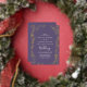 Ce faire-part de mariage minimal de prune violette et de feuille d'or est parfait pour un mariage de saumons. Le design des tons de bijoux est composé d'une simple silhouette de feuilles verdoyantes, d'un violet bleu foncé et d'un style boho minimaliste, avec de luxueux motifs en feuille pressée.