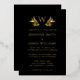 Invitation En Aluminium Feuilles Monogramme simple Élégant Black Gold Mari