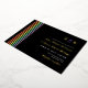 Faire-part de mariage LGBT informel avec bandes arc-en-ciel, votre monogramme, et feuille d'or contre un arrière - plan sombre avec un libellé informel moderne mariage et vos noms dans un script doré moderne.