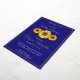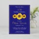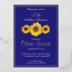 Tournesols contre un arrière - plan bleu profond. Invitation à une célébration du 50e anniversaire. Ce bleu profond tendance, ainsi que le nom et le cadre de la feuille réelle, crée un contraste agréable avec les tournesols jaunes... Une invitation gaie et lumineuse pour la saison estivale. Faites-le unique en incluant les détails de votre réunion.