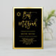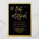 Ces élégantes invitations Bat mitzvah ont une bordure en feuille d'or avec une typographie branchée et une feuille d'or Star of David, sur un arrière - plan noir.