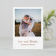 Carte de remerciements mariage moderne en feuille d'or rose avec un design simple et minimal avec "amour et merci" dans un script élégant, sous votre photo préférée. Le dos a un collage photo avec votre message personnalisé. Tout le texte à l'avant est en vrai feuille. Cette carte de remerciements chic conviendra à tous les styles de mariage.