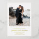Mariage en feuille d'or moderne enregistrer la carte de date avec un design minimal avec votre photo préférée. Vous trouverez ci-dessous les détails de votre événement dans une combinaison de polices sans serif simples et d'un script élégant imprimé en papier peint. Ce chic enregistrer la date est parfait pour n'importe quel style de mariage.