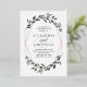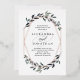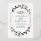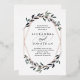 Cette invitation de mariage branchée et élégante présente une feuille d'or rose forme géométrique entourée de belles branches verdoyantes, sur un arrière - plan blanc simple.