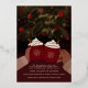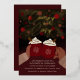 Cette invitation festive présente l'illustration de deux mains tenant des tasses rouges de flocon de neige de cacao chaud empilé de crème devant un sapin de Noël dans une palette de couleurs rouge, or et bordeaux. Le titre dit "confortable et confortable" mais il peut être changé à n'importe quoi pour refléter votre événement. Ce serait parfait pour une soirée cosy à la fête de vacances, soirée au cacao chaud, soirée festive pour filles ou soirée de Noël.