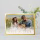 Gold Frame Enregistrer La Date Foil Invitation. Simple et élégante, cette élégante carte de faire-part mariage à la date de sauvegarde présente une bordure élégante et un script de calligraphie élégant pressé dans une feuille d'or réelle avec 1 photo verticale et 1 photo horizontale et un code QR pour la personnalisation. Il y a une superposition photo blanche optionnelle en bas qui peut être facilement supprimé si vous le choisissez.