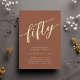 Célébrez son anniversaire d'étape avec ces invitations chic à la fête du 50e anniversaire avec "cinquante" en écriture manuscrite en feuille d'or moderne. Personnalisez avec les détails de votre fête en dessous. Un choix inoubliable et luxueux pour de fabuleuses célébrations du 50e anniversaire.