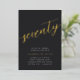 Célébrez son anniversaire d'étape avec ces invitations chic à la fête de 70e anniversaire avec "soixante-dix" en écriture manuscrite en feuille d'or moderne. Personnalisez avec les détails de votre fête en dessous. Un choix inoubliable et luxueux pour de fabuleuses célébrations du 70e anniversaire.