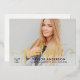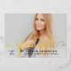 La carte de faire-part élégante et élégante de remise de diplômes et l'invitation de la fête comporte une photo senior avec une véritable couche de feuille d'or "diplômée". Personnalisez le texte personnalisé moderne avec le nom de votre élève, l'école et l'année de classe. Cette carte recto verso comprend le libellé de l'invitation de la partie de graduation au verso.