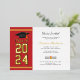 Ajoutez votre année de graduation, le nom et les détails du lieu avec date à cet or moderne en gras sur l'arrière - plan blanc rouge avec l'invitation de la soirée de graduation de typographie noire en utilisant notre bouton "Personnaliser" ci-dessus