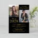 Réelle invitation à la fête de remise de diplômes conjointe avec un arrière - plan noir élégant qui peut être changé à n'importe quelle couleur, photos des deux diplômés, et un élégant modèle de double célébration en feuille d'or facile à personnaliser. REMARQUE : Le pétrole peut être changé en or argenté ou rose.