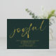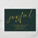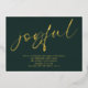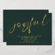 Glam Joyful Script Christmas Party Green Real Foil pour Joyful qui est dans un grand jeu moderne Calligraphie comme est la typographie avec tous les détails de la fête. L'arrière - plan vert foncé de chaque côté peut être changé en une autre couleur si vous le souhaitez via l'option Modifier plus loin. Personnalisez facilement avec vos détails de fête.