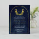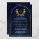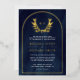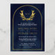 Invitation En Aluminium Laurel Wreath Feuille Marine Bleu Mariage Or