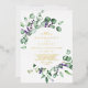 Cette invitation rustique en feuille d'or lavande décontractée mariage est parfaite pour un mariage extérieur simple et élégant. Le design floral présente des feuilles d'eucalyptus aquarelle et de la verdure avec des sprigs de fleurs sauvages violets avec luxueux texte de feuille d'or.