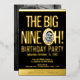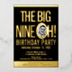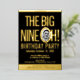 Big Nine Oh!, brun simple graphique noir et doré feuille ou votre propre modèle photo couleur feuille 90e anniversaire invitation. Personnalisez cette invitation d'anniversaire avec les détails de votre fête d'anniversaire, et deux photos différentes de votre fille ou garçon d'anniversaire une sur le devant et une sur le dos. D'autres années couleurs et articles correspondants sont disponibles. © Design original par Sarah Trett pour www.mylittleeden.com sur Zazzle.