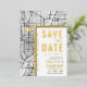 Une carte d'invitation unique à jour avec une carte de la ville de St. Paul, Minnesota. Il présente plusieurs caractéristiques uniques qui font une impression sur votre futur invité, y compris les noms de la mariée et du marié, le nom de la ville, et les mots "Save the Date" en feuille d'or. Un symbole de coeur en feuille d'or indique votre emplacement de l'amour dans la ville. La carte de la ville est à l'avant et à l'arrière et peut être mise à l'échelle et déplacée autour. Tous les éléments de cet invitation sont déverrouillés, alors amusez-vous d'être créatif et de le faire correspondre à votre style.