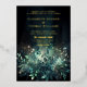 Une aquarelle fantaisie illustrant le feuillage luxuriant en vert émeraude, pétillant de lumières féériques et de poussière magique, décore cette invitation mariage de automne du printemps avec un thème forestier enchanté. Une invitation élégante et moderne à un mariage de conte de fées, il présente également l'impression de feuilles d'or pour une touche de luxe supplémentaire. Parfait pour les mariées qui aiment le cadre de la forêt de contes de fées, la forêt de fées ou le thème du jardin de fées et vert émeraude.