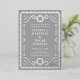 Ce magnifique design de faire-part de mariage d'inspiration papel picado présente un cadre orné en feuille d'argent, un arrière - plan bleu coloré et une typographie moderne. Ce design élégant et moderne est un choix fabuleux pour un mariage latino ou un mariage de destination mexicaine. Vous pouvez customiser encore plus ce design en ajoutant une photo ou un texte supplémentaire à l'arrière-plan. Le pétrole est disponible en or, argent ou or rose et brille absolument ! Sélectionnez de vraies invitations de mariage pour ajouter ce facteur wow! ! Ce design est également disponible en format non papier (voir la collection ci-dessus)...