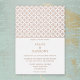 Demandez à vos amis et à votre famille de se joindre à vos célébrations de mariage avec ce faire-part de mariage moderne. Le design en papier peint Twilight Charms présente un motif géométrique à thème "sous la lune" avec des motifs roses de style doré et flottant sur un arrière - plan blanc. Profitez d'un blanc classique ou changez la couleur de l'arrière - plan pour customiser davantage votre papeterie mariage.