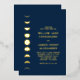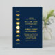 Ajoutez une touche d'élégance cosmique à votre événement grâce à notre Invitation Mariage Celestial Foil. Immergez-vous dans la simplicité enchanteresse de notre design, reflétant la magie fascinante des corps célestes. Notre design à la fois tendance et intemporel présente une série de phases de lune artistiquement crées en feuille d'or sur un fond bleu marine saisissant. Cette touche d'or ajoute une touche de chaleur et de charme scintillant à la base bleue cool de minuit, renforçant encore l'allure accueillante de la pièce. Le design maintient une approche minimaliste, ce qui permet aux éléments célestes de briller vraiment. Vous pouvez facilement personnaliser selon vos besoins, en vous assurant que chaque pièce reflète votre style unique.