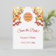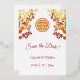 Des fleurs de cerisiers rouges et une véritable feuille d'or double symbole de bonheur sur un arrière - plan blanc. Enregistrez le texte de la date dans une police élégante. Produits mariages chinois correspondants disponibles.
