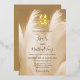 Cette nouvelle invitation de style mariage chinois incorpore un double symbole de bonheur traditionnel or dans un faire-part de mariage boho. Il comprend une photo créée par l'IA de l'herbe de pampas beige blush, un véritable symbole de bonheur double feuille d'or artistique et un élégant script manuscrit moderne.