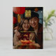 Ce faire-part de mariage chinois moderne comprend votre photo et un vrai symbole de bonheur double feuille d'or et un vrai texte de feuille d'or dans un script manuscrit et une police sans empattement moderne.