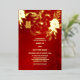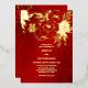 Ce faire-part de mariage chinois moderne est doté d'une véritable feuille d'or double symbole de bonheur et de véritables fleurs roses de feuille d'or sur un arrière - plan rouge. À l'arrière se trouve un texte chinois traditionnel et des roses rouges assortis à l'arrière - plan floral rouge chatoyant.